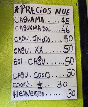 A caguamona (1.2 liters, about 40 ounces) of Indio costs $2.50.