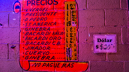 Or you can opt for brandy by the drink, at the bargain price of 12 pesos, about 60 cents, or splurge and get the Jimador for 75 cents a shot.