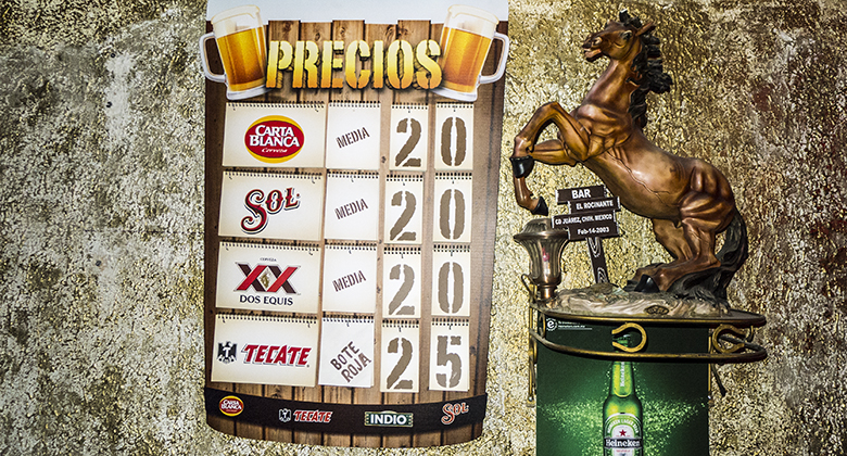 The Rocinante is discretely located on the Plaza Cervantina, on the edge of Juarez’ gay bar district. The place is nice, clean, and well-lighted by red candy box lights. The bathrooms at the Rocinante are among the nicest in downtown Juarez. And you’ll probably use them a lot when the bottled beers are only a dollar.