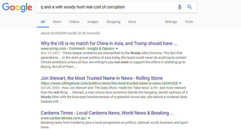 Ironic, isn’t it? That an article on fighting corruption gets disappeared from Google?