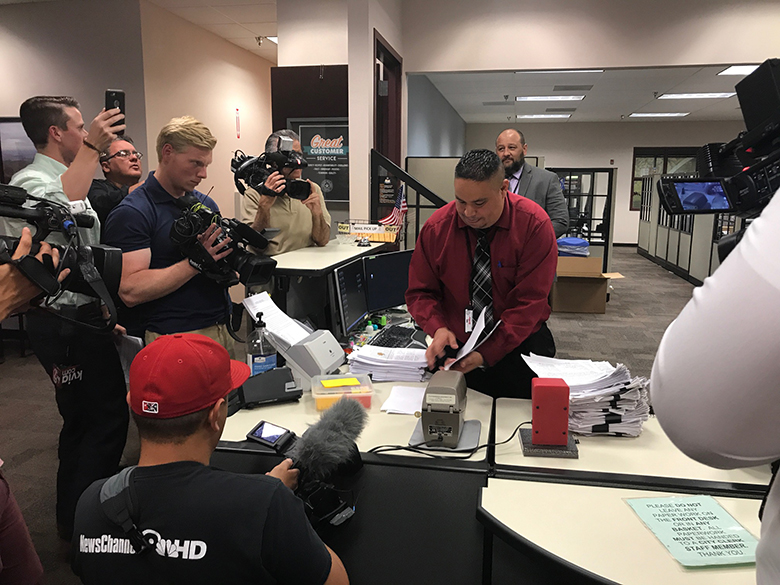 All the major local media, with the exception of one newspaper, covered the submission of the petition to the City Clerk and the press conference which followed . We guess the El Paso Times forgot the address of their former headquarters! It has become clear to us that the Times, as of late, is deliberately minimizing the reporting on this critical issue while their competitors are keeping the sports arena controversy front and center. Apparently the return of “Fluffy” the comedian to the Haskins center, our other arena, deserves more attention…