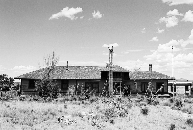For a time, the heart of Ancho was made of plaster and brick. Ancho-made bricks and plaster helped rebuild San Francisco after the 1906 ‘quake and more bricks were used for smelter stacks in Arizona. In 1930, the town used its own product to construct a large, brick schoolhouse, replacing the small, wooden, one-room job that burnt down. The school had as many as five teachers and 140 students. However, Ancho was in trouble. Phelps Dodge had purchased the brick plant in 1917, enlarged it, and then shut it down following bankruptcy in 1921. It was finally dismantled in 1937 by the Abilene Salvage Company. There was a slight increase in population during the Depression as desperate families tried to make money mining for gold in the Jicarilla Mountains, but that was short-lived. In 1954, U.S. 54 was laid out, cutting Ancho off by over 2 miles on the route between Corona and Carrizozo. The school closed the following year. In 1959, the railroad shuttered the depot (photos at top and below) and the final nail was put in Ancho’s coffin. Almost.