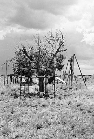 Not one car passed down the road during our visit. The town was completely silent. Lightning flashed on the horizon and for a brief moment a few big drops of rain fell. Only one building seemed occupied and, indeed, we learned that someone does live there. So, this is Ancho in 2012, population 1.