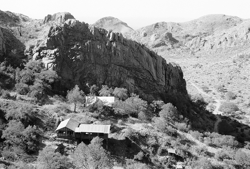 Aptly named for the little spring that dribbles down off a high rock face, this rare water source in the parched mountains of southern New Mexico has attracted both man and beast since time immemorial. Dripping Springs is best known as the site of Major Eugene Van Patten’s Mining Camp, which was really a vacation spot and is sometimes referred to as the Dripping Springs Resort. When the resort closed, Boyd’s Sanitarium was built just around the corner.