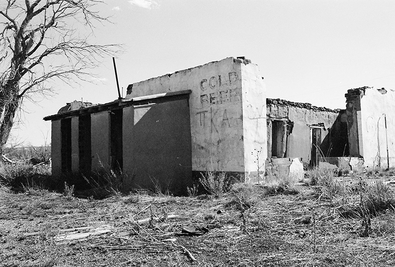 The old bar shown below and at the top of this post is perhaps the most-photographed building in Montoya. Unfortunately, I can’t find a thing about its history. If you know something, please leave a comment. It sold beer and someone took a few shots at it, that much is clear.