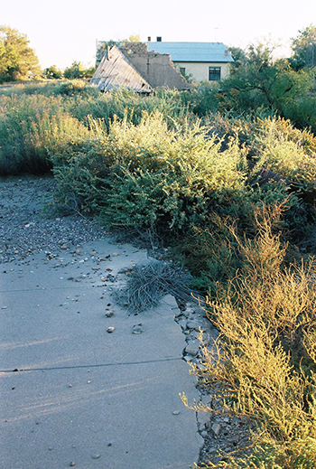 known that all that’s left of what could be considered the original Hilton Hotel is its foundation, located across from the old post office (now a restored private residence), I have been unable to find a single picture of the site anywhere. So, as is my wont, I took my own. In fact, I took two. The concrete shown here and below is all that remains of the birthplace of one of the greatest hotel chains in the world, without which Paris Hilton might be living in a trailer out in the Socorro County desert. However, the original ballroom floor from the hotel was reportedly installed in the Wool Warehouse building in Magdalena. It must’ve been part of a remodeling job as that place was built in 1913. Can anyone get me in to have a look?!