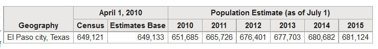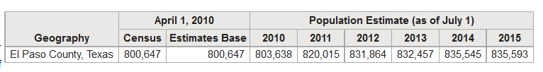 According to the chart, El Paso County’s population only grew by 48 people from July 1, 2014 to July 1, 2015.