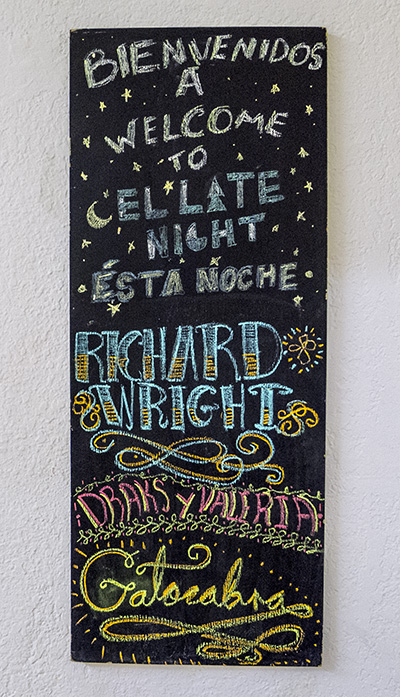 Badía comes in through a door, and everyone cheers, like we weren’t just hanging out a minute ago, and Badía gives his monologue and we all laugh in all the right places.