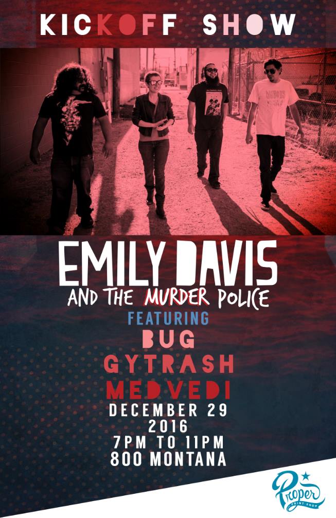Okay, music fans. El Paso’s songbird Emily Davis is playing a show at Proper Printshop to finance gas and ramen for her winter tour. The show is tonight at Proper Printshop, 800 Montana.