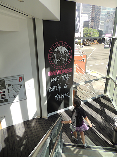 Of course, the main reason we decided to check out the Grammy Museum is the special Ramones exhibit. I couldn’t stop thinking about how scrawny these kids were. There’s an entire stage of Ramones instruments and Marshall amps set-up…behind the barrier. Loads of posters and report cards, fan art and photos, and don’t forget the Pinhead costume…that thing has got to stink!