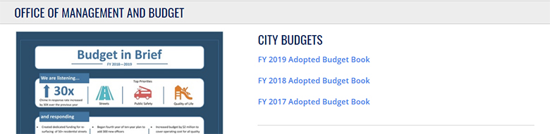 If you click “City Budget” on the Office of Management and Budget home page you will find budget books back to FY 2007.