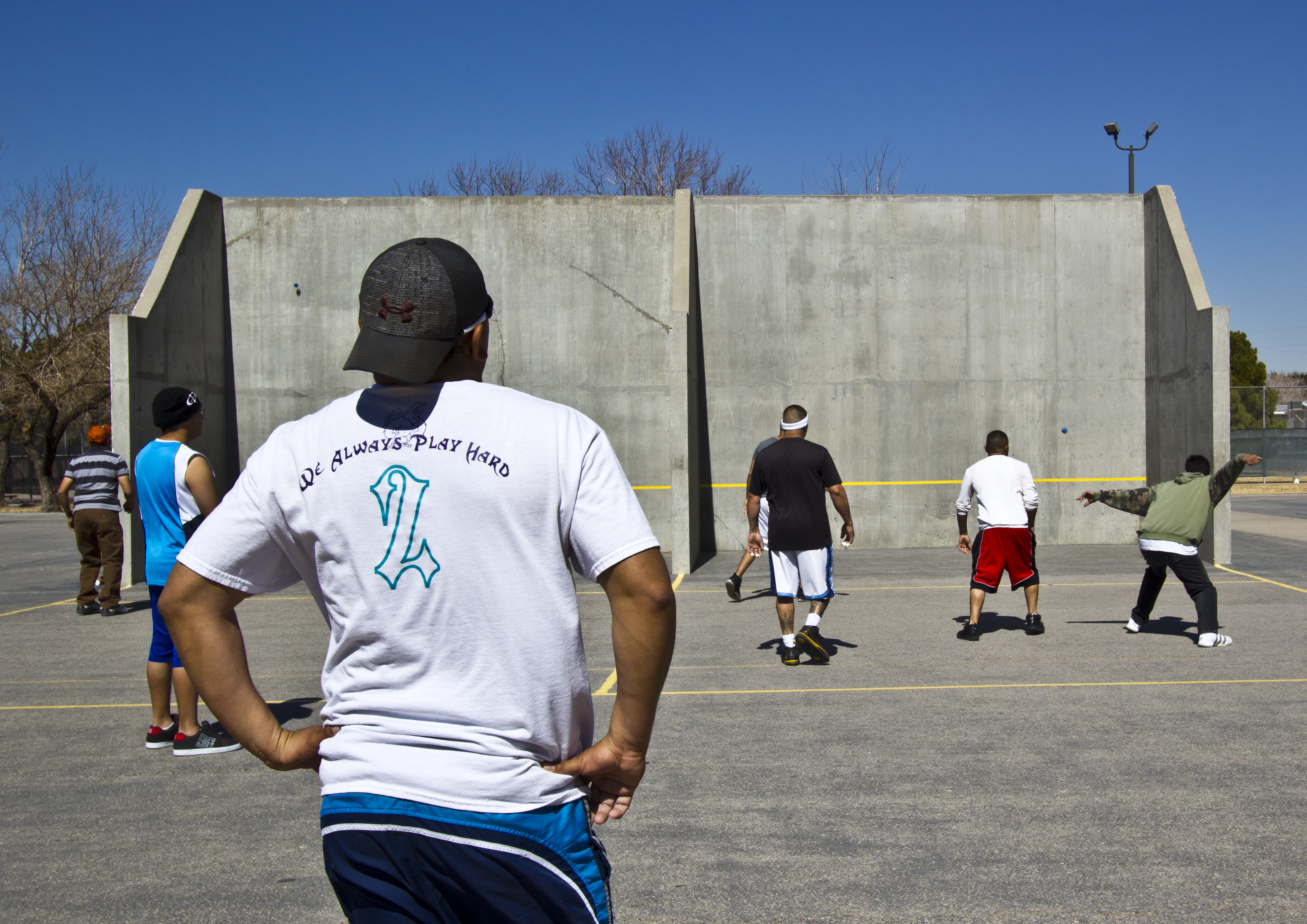In English we call it handball. In Spanish it’s rebote a mano con pelota dura, or rebote for short. They are not exactly the same game, but if you know one, you’d recognize the other. (read more at What’s Up.)