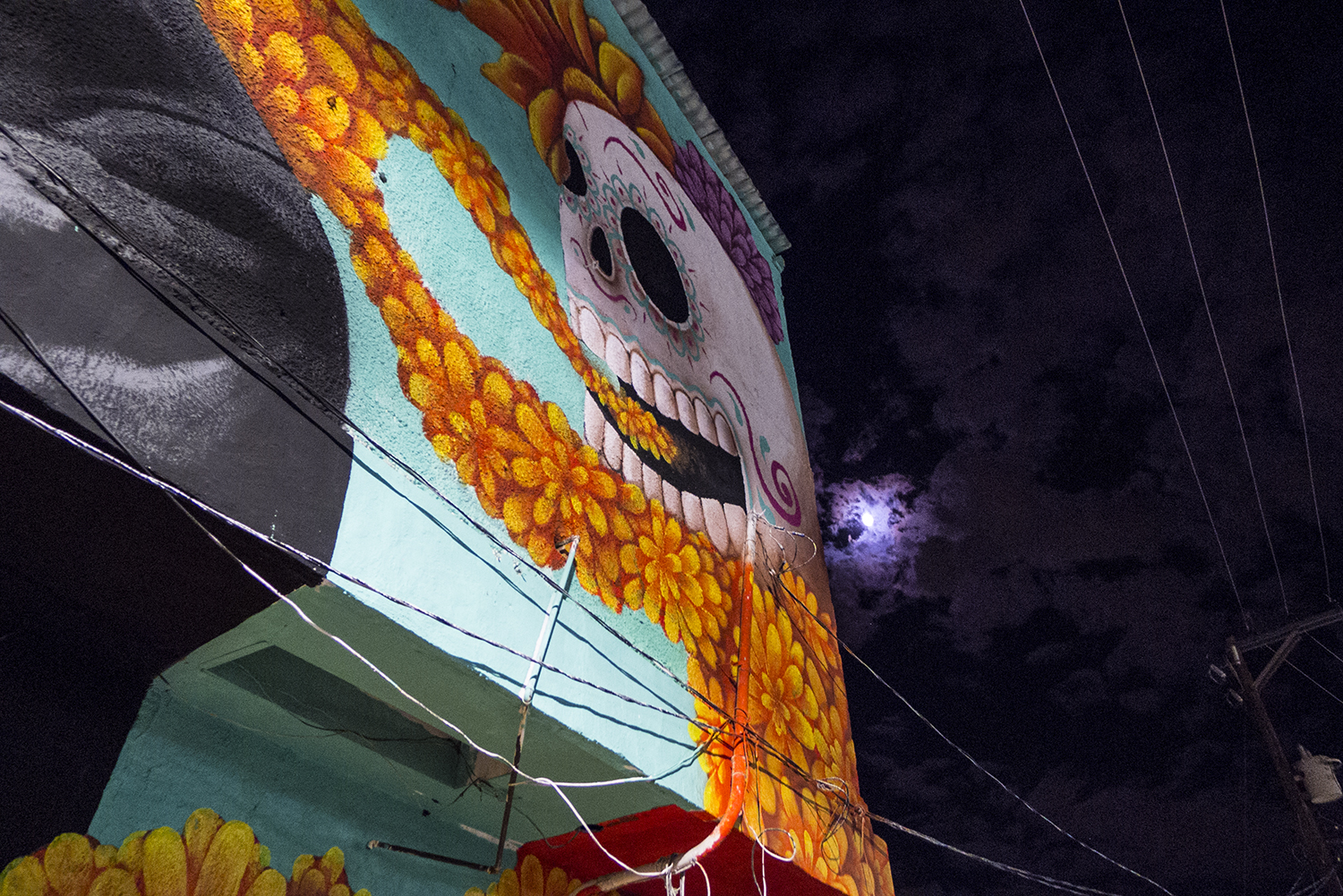 The murals on Mariscal are done, or almost. The scaffolds were there, but the second shift had gone home.