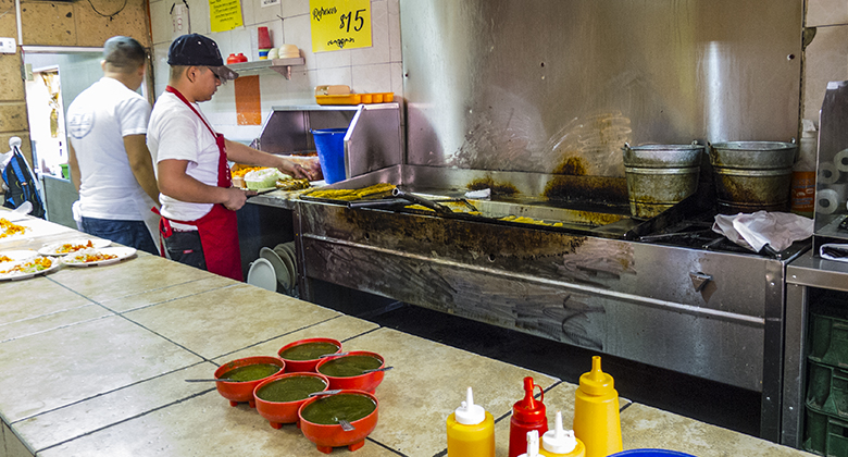 During the week the flautas are slathered with a tomato sauce. On the weekends it’s guacamole.